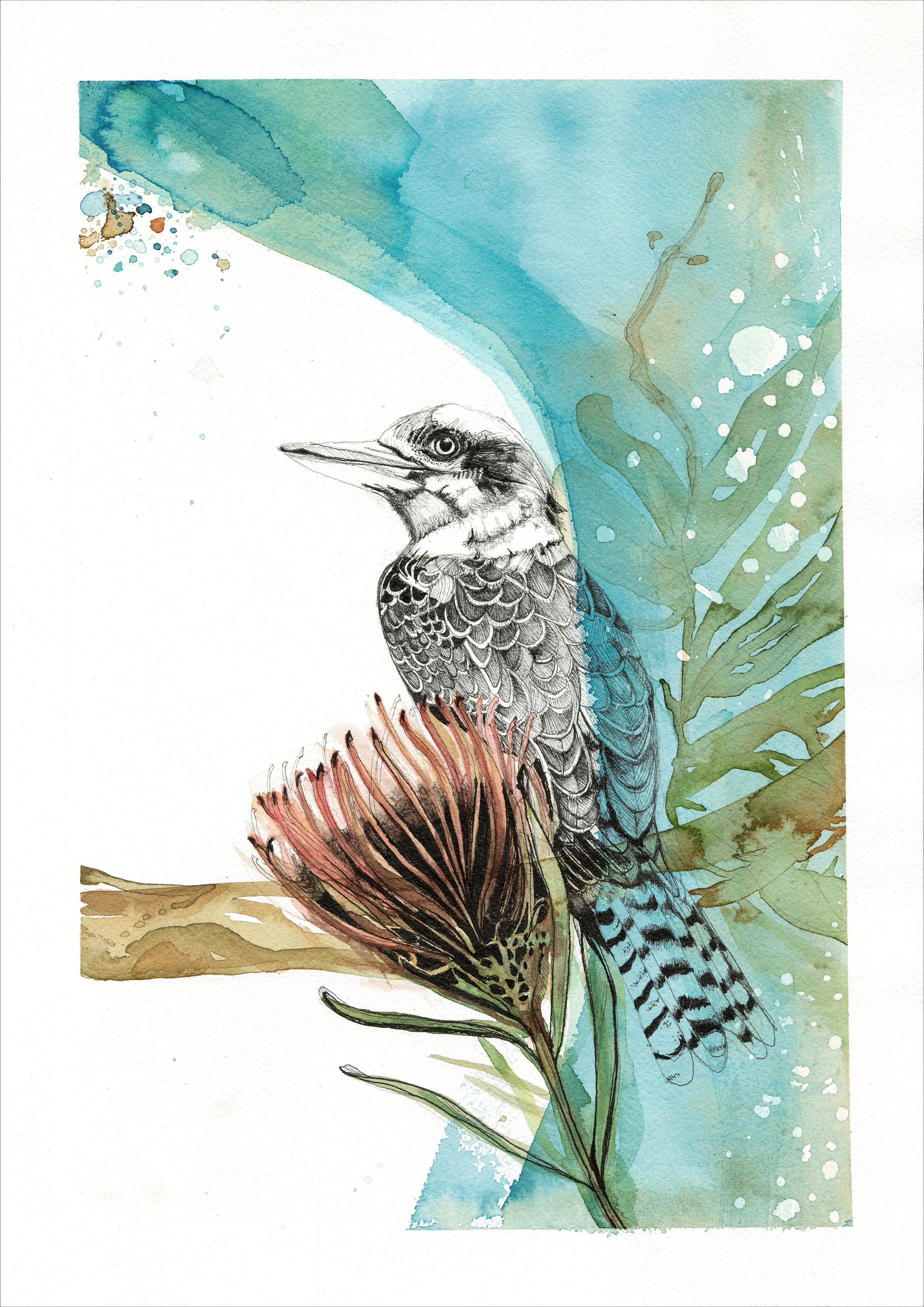 Kingfisher (ink and Watercolour non 300 gsm paper)