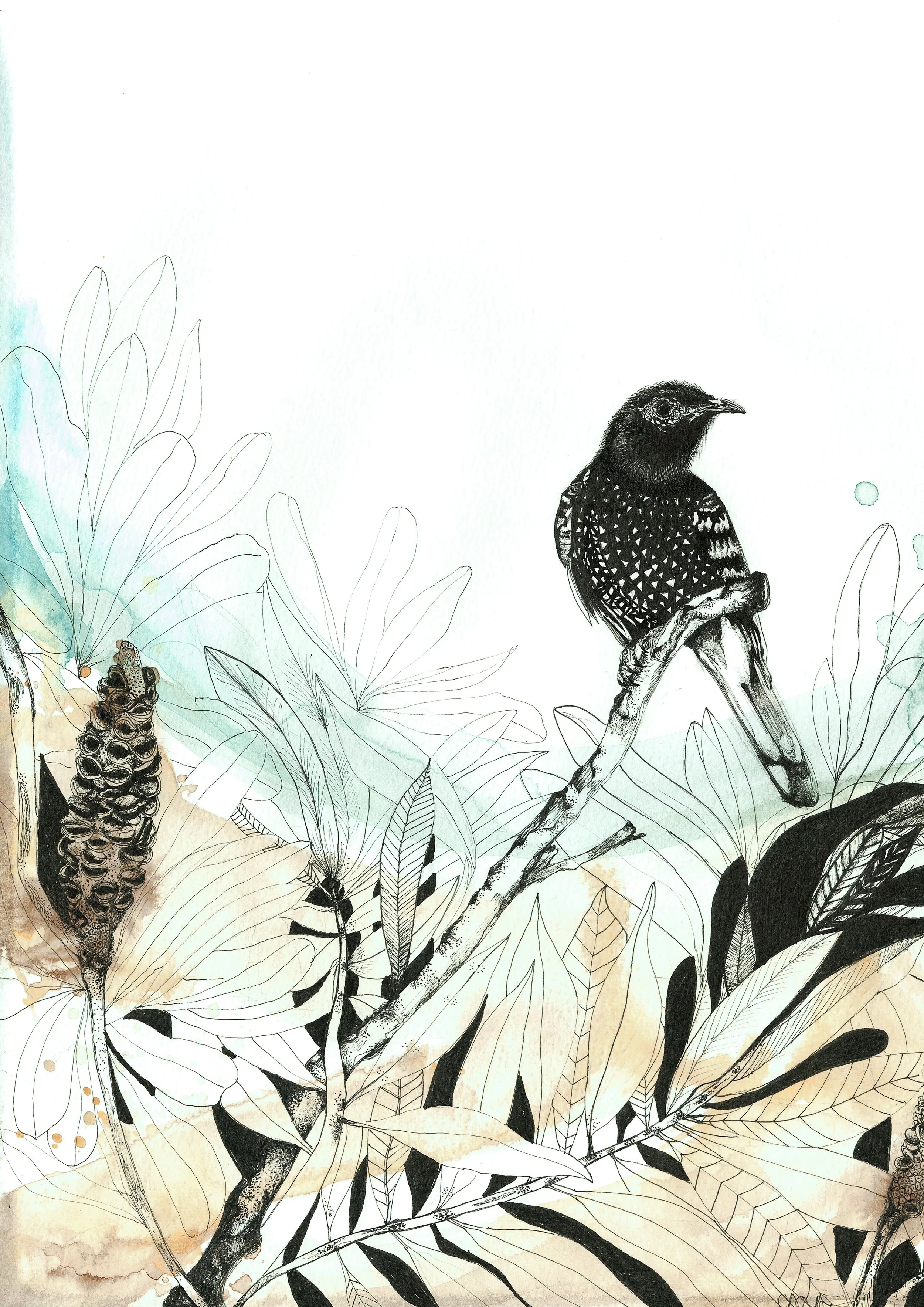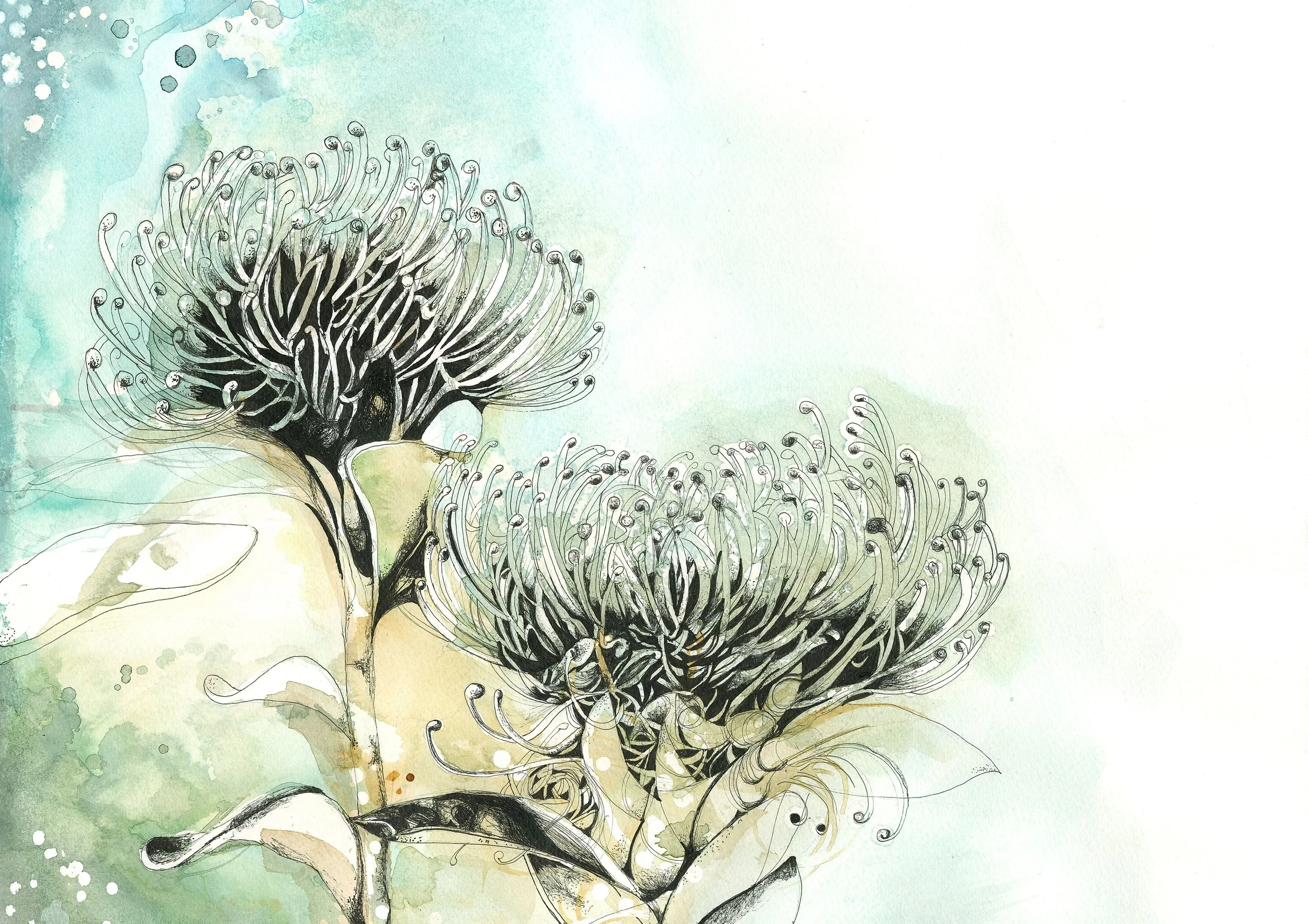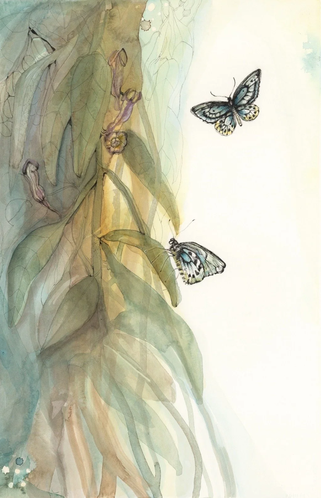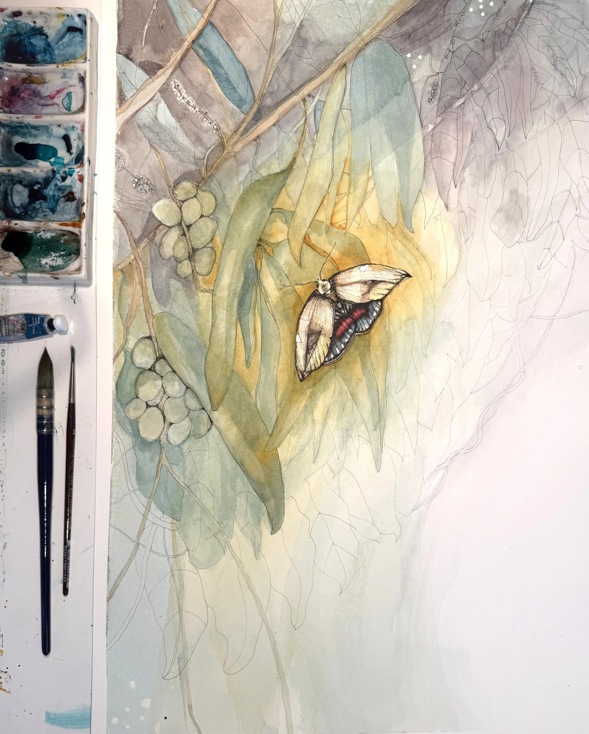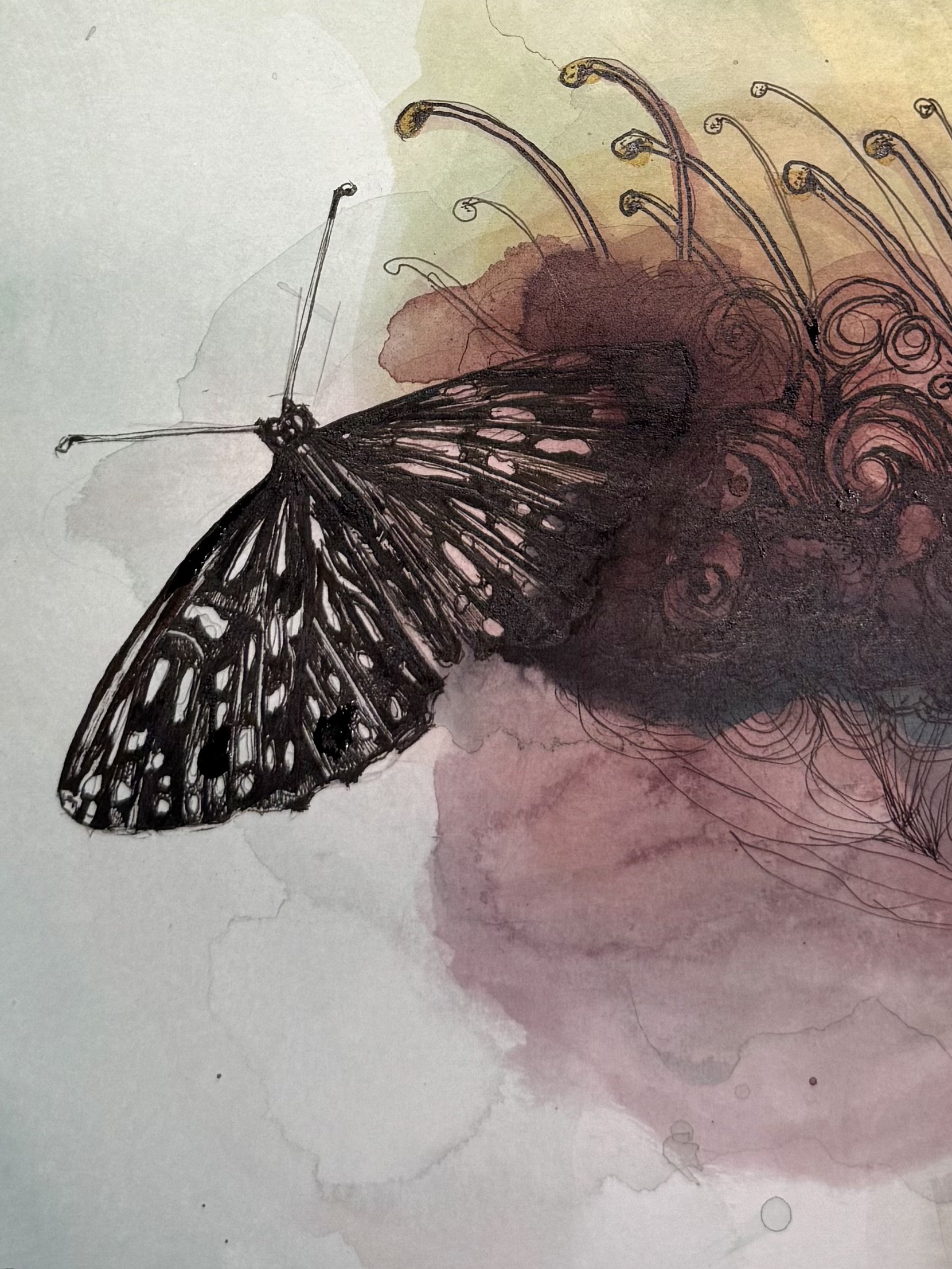 detail of Artwork “ Butterfly and Grevilleas” (Ink and Watercolour on Arches 300gsm)